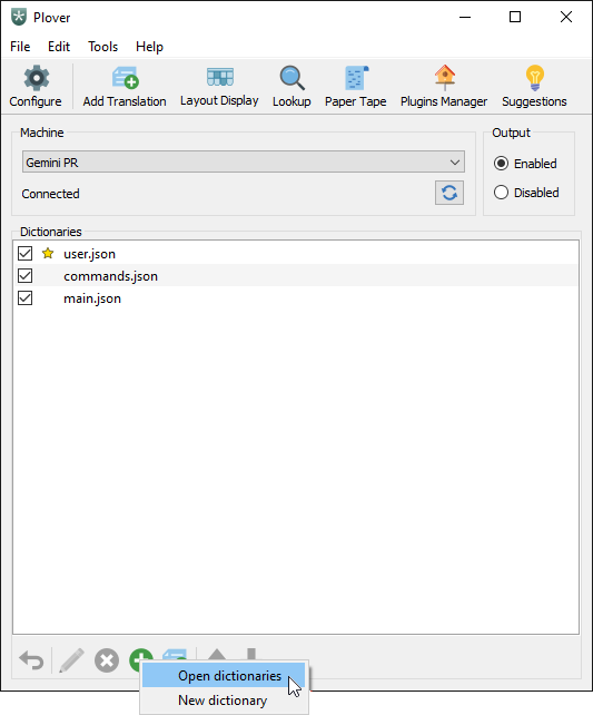 plover-dict-commands: switch dictionaries on/off (or change priority) with strokes