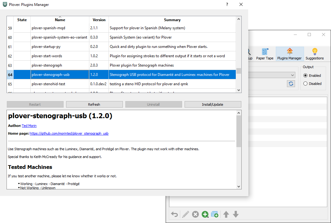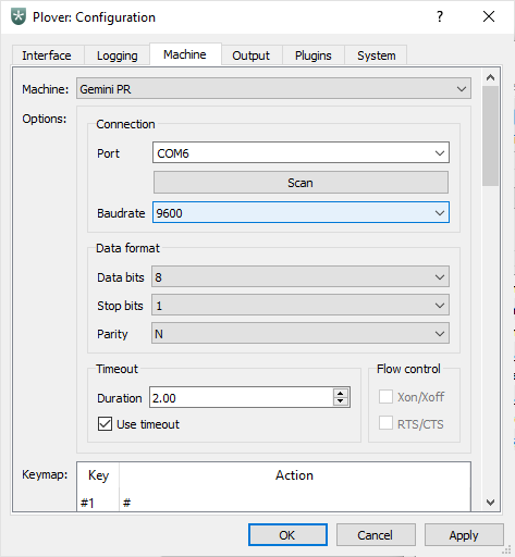plover-stenograph-usbGo to Configure > Machine, hit scan, then try the available ports until one works.